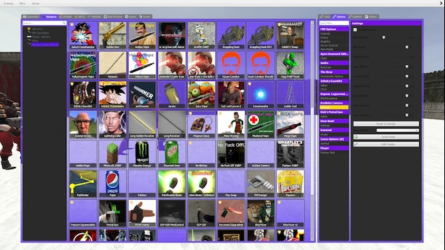 Аддон добавляет огромный пак рофл оружий таких как: